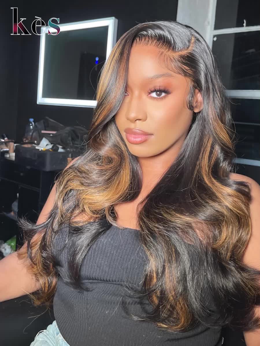 Kes X dejastylez 26 inch 13x6 HD Lace front wigs virgin human hair 200 density lace frontal body wave wigs brown highlight color
