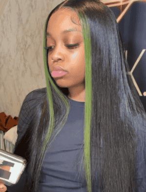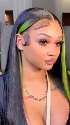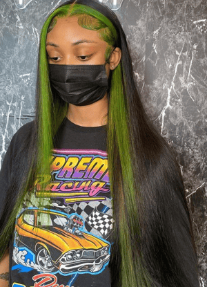 Kes x gorjessdollz 22 inch 13x6 HD Lace front wigs virgin human hair 200 density lace frontal straight wigs green highlight color