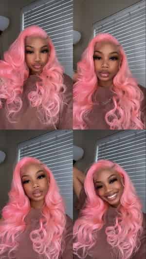 Kes x gorjessdollz 24 inch 13x6 HD Lace front wigs virgin human hair 200 density lace frontal loose wave wigs pink color