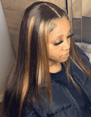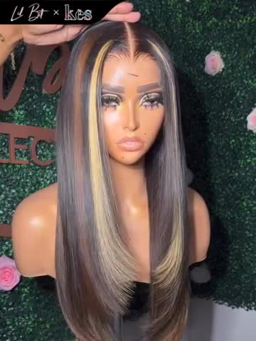 Kes x lilbit_collections 18 inch 5x5 Glueless human hair HD lace closure wigs 200% density straight wigs brown and 27# highlight color