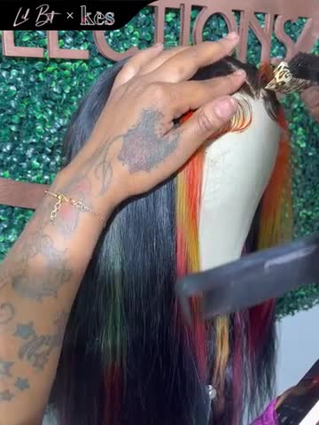 Kes x lilbit_collections 22 inch 5x5 Glueless human hair HD lace closure wigs 200% density body wave wigs orange and green highlight color