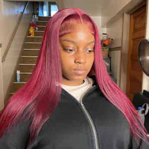 Kes x lilbit_collections 22 inch 5x5 Glueless human hair HD lace closure wigs 200% density straight wigs burgundy 99j color