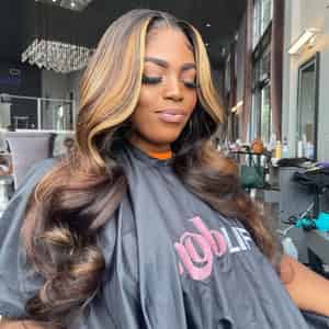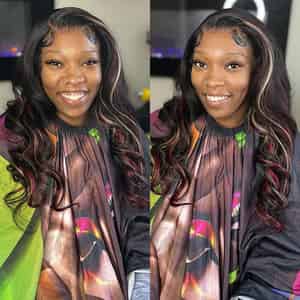 Kes x lilbit_collections 24 inch 5x5 Glueless human hair HD lace closure wigs 200% density body wave wigs blonde and red highlight color