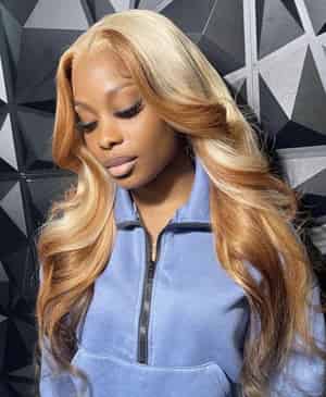 Kes x lilbit_collections 24 inch 5x5 Glueless human hair HD lace closure wigs 200% density body wave wigs brown and blonde ombre color