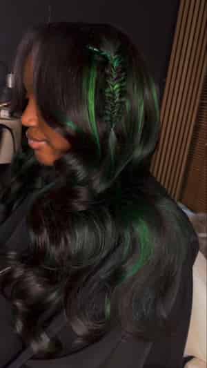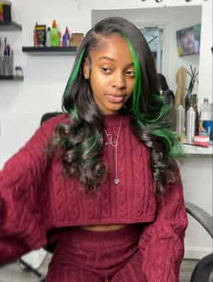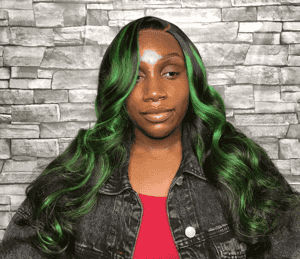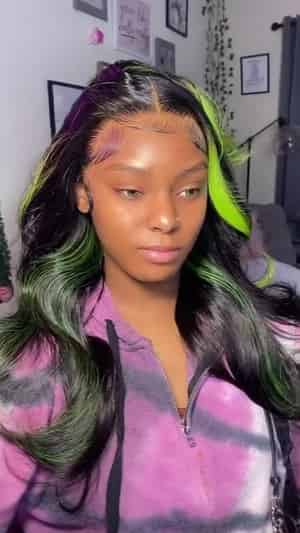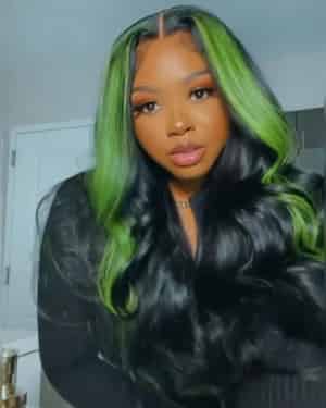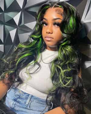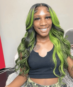 Kes x lilbit_collections 24 inch 5x5 Glueless human hair HD lace closure wigs 200% density body wave wigs green highlight color