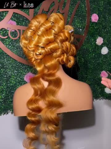 Kes x lilbit_collections 26 inch 5x5 Glueless human hair HD lace closure wigs 200% density loose wave wigs orange color
