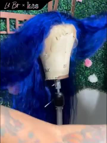 Kes x lilbit_collections 26 inch 5x5 Glueless human hair HD lace closure wigs 200% density straight wigs blue color