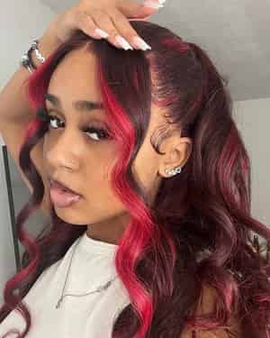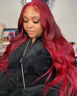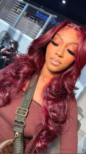 Kes x lilbit_collections 28 inch 5x5 Glueless human hair HD lace closure wigs 200% density body wave wigs 99j and red highlight color