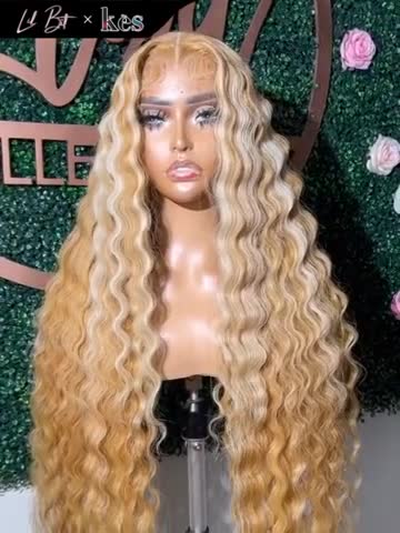 Kes x lilbit_collections 28 inch 5x5 Glueless human hair HD lace closure wigs 200% density loose wave wigs 27# and blonde color
