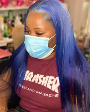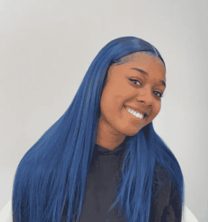 Kes x yanithelacewiz 28 inch 13x6 HD Lace front wigs virgin human hair 200 density lace frontal straight wigs blue color