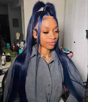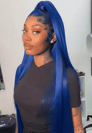 Kes x yanithelacewiz 30 inch 13x6 HD Lace front wigs virgin human hair 200 density lace frontal straight wigs blue color